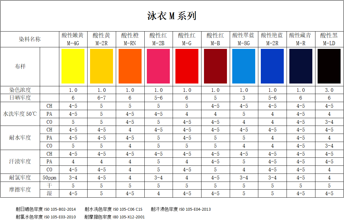 系列染料,提升力出色,色譜豐富齊全,輕松駕馭深色染色需求。更擁有無懼潮濕環(huán)境的高濕牢度,能抵御紫外線侵蝕的良好日曬牢度,讓泳衣色彩始終鮮亮持久。