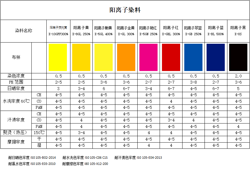 靚源陽離子系列作為專業(yè)級水溶性染料,以極致濃艷的色澤表現(xiàn)脫穎而出,無論是鮮明熱烈的暖色調(diào),還是深邃優(yōu)雅的冷色系,均可呈現(xiàn)出飽和度高、質(zhì)感細(xì)膩的視覺效果。其色譜覆蓋范圍極為廣泛,從經(jīng)典基礎(chǔ)色到前沿潮流色號一應(yīng)俱全,可充分滿足紡織品多樣化的染色需求。