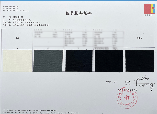 面對(duì)多材質(zhì)混紡布料特深色染整難題,友商未能滿足的標(biāo)準(zhǔn),靚源技術(shù)團(tuán)隊(duì)迎難而上!通過專業(yè)研討與反復(fù)測試,精選“特深活性黑JW”,最終呈現(xiàn)效果不僅比肩傳統(tǒng)硫化黑,更超越客戶來樣色板深度,贏得客戶高度認(rèn)可!